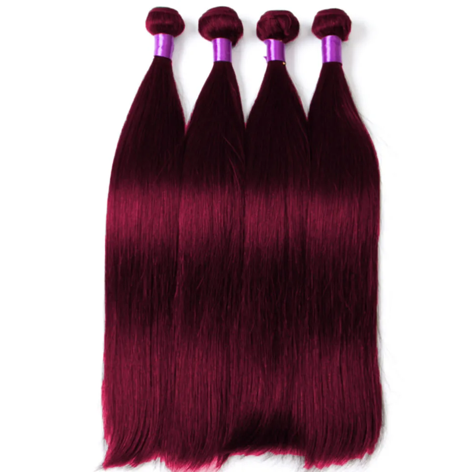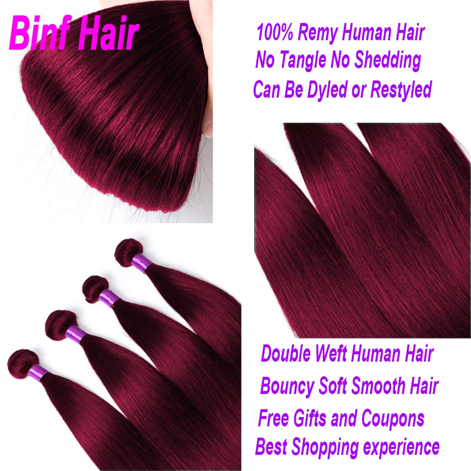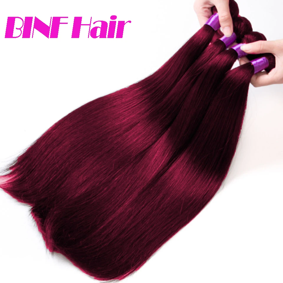 Colored 99j Burgundy Bundles 34 36 38 40 Inches Bone Straight Human Hair Bundles 1/3/4 Brazilian Remy Hair Weave Bundles