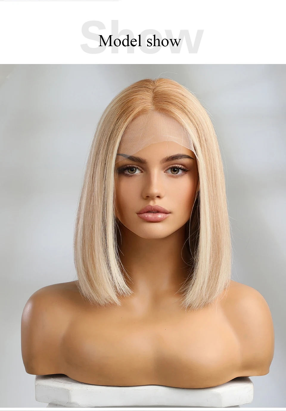 HAIRCUBE Bayalage Honey Blonde Human Hair Wigs for Women 13×5×1 Lace Front Wig Lob Hairstyle Middle Part Bob Remy Human Hair Wig