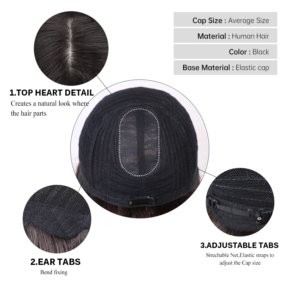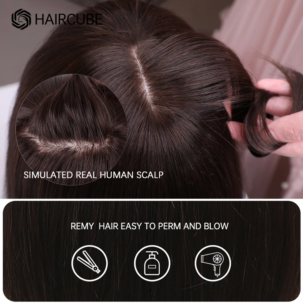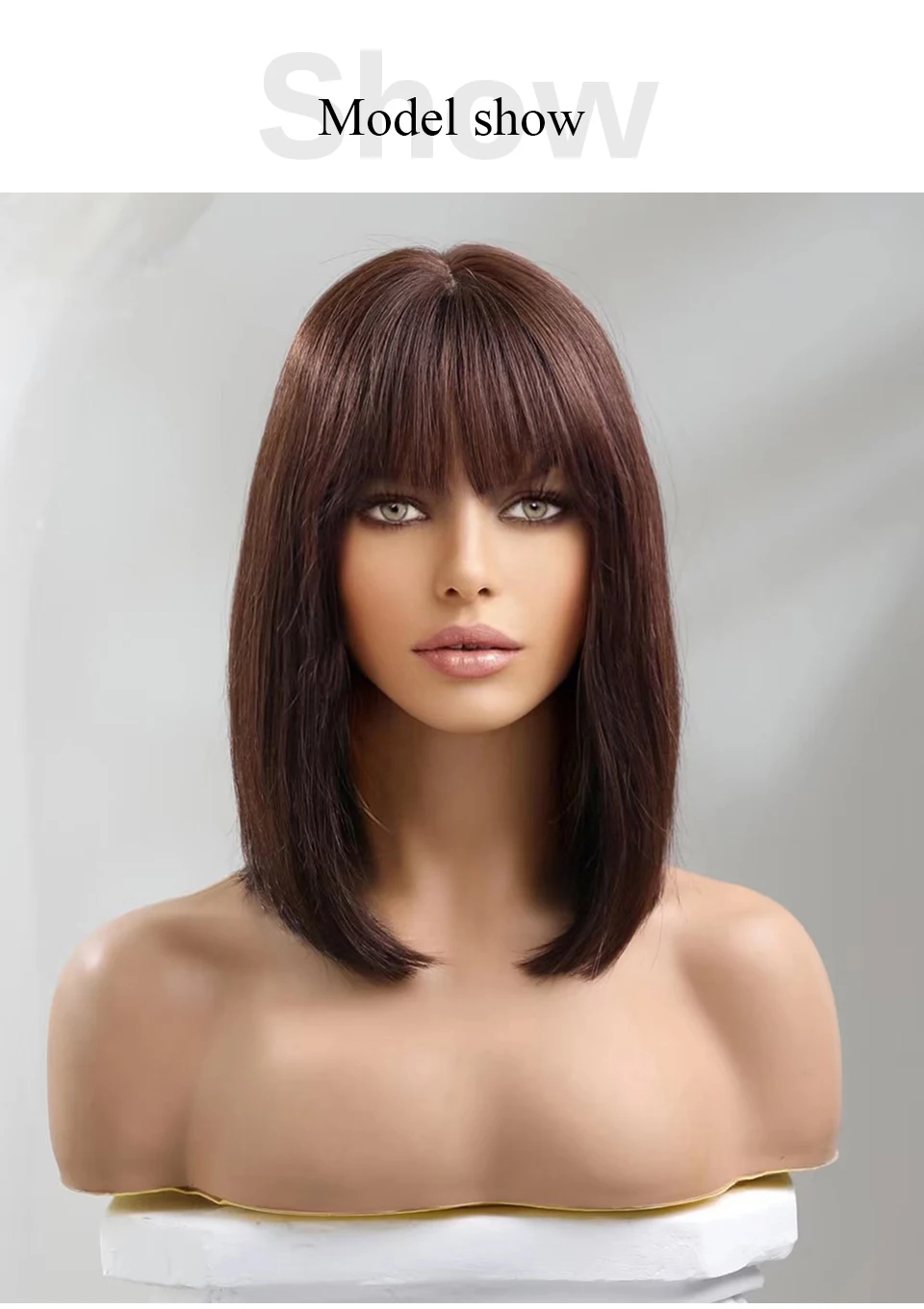 HAIRCUBE Dark Brown Bob Human Hair Wig with Bang Shoulder Length Straight Wigs for Woman Remy Hair Machine Made Heat Resistant